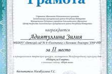 Награда Адиятуллиной Зилии, занявшая 2 место 15.04.2020