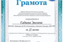 Награда Гадиевой Эвелины, занявшая 1 место 15.04.2020