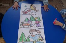 Занятие было посвящено на тему: "Зимняя одежда". Ребятишки научились правильно называть зимнюю одежду. На занятии отгадывали загадки, работали с картинками./ Балалар белән кышкы киемнәр турында сөйләштек. Алар рәсемнәр аша әйтергә өйрәнделәр. Табышмакларның җавапларын таптык.