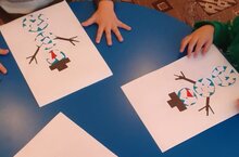Воспитанники детского сада сделали новогодние игрушки для елочки. Вместе вешали их на ёлку./ Бакча балалары белән яңа ел уенчыклары ясадык.