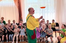 Не секрет что клоуны – это самые веселые и добрые в мире люди. Они воплощение шуток и озорства! Символы настоящего веселья! Яркие костюмы и грим, веселые игры и сюрпризы – делают клоуна самым популярным и узнаваемым персонажем, самым озорным и веселым героем в мире детской фантазии. Традиционно клоунов можно увидеть в цирке. Однако, в один из летних дней, наш детский садик посетил весёлый и озорной клоун Бантик. Вместе с клоуном ребята танцевали и веселились. Озорной клоун подарил детям множество улыбок и хорошего настроения.