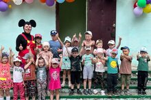 В гостях у воспитанников нашего детского сада побывал очаровательный мышонк: Микки Маус. Для детей было проведено развлечение, цель которого - создать у детей радостное, веселое настроение. Вместе с Микки Маусом дети танцевали, играли, отгадывали загадки.