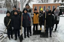 Отряд юнармейцев нашей школы провели операцию "Снежный десант" по очистке снега на территории монумента славы.