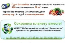 Внимание!У вас дома скопилось много батареек?Знаете о том, что их нельзя выбрасывать, но не знаете, куда их сдать?Приносите батарейки на нашу акцию! У вас есть шанс сберечь окружающую среду и сделать мир чуточку чище.
