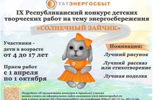 1 апреля 2018 года стартовал IX Республиканский конкурс детских творческих работ на тему энергосбережения «Солнечный зайчик». Как и в прошлом году конкурс приурочен к Международному дню энергосбережения, который отмечается 11 ноября. Стоит отметить, что в этом году введена новая номинация «Лучшая поделка на тему энергосбережения», о которой подробнее изложено в Положении о конкурсе. С более подробной информацией об организации конкурса и правилах участия можно ознакомиться на официальном сайте компании www.tatenergosbut.ru