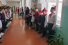 Мәктәбебезнең пионер дружинасы герой-шагыйрь М. Җәлил исемен йөртә. Шул уңайдан бүген 1-4нче һәм 5-7нче сыйныф укучылары өчен тантаналы линейка үткәрелде. Укучылар шагыйрьнең бөек җиңү рухы белән сугарылган шигырьләрен сөйләделәр. 1 сыйныф укучылары "Очкын"нар сафына кабул ителделәр.