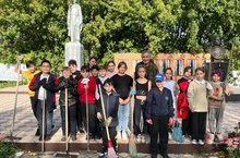 Волонтеры Победы 5а класса(кл.рук-ль -Абзалова С.С.) выполнили работу по благоустройству территории вокруг памятника, приведению в порядок территории мемориала: очистили от травы, сухих веток и листьев, подмели территорию. Благоустройство памятных мест – одно из приоритетных направлений работы движения «Волонтеры Победы». Активисты ежегодно убирают мусор, очищают от пыли и грязи памятники, мемориальные плиты и памятные знаки.