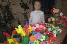 Каждый класс начальной школы к празднику 8 Марта должен был сделать букет цветов из бумаги. Не остались равнодушными и родители. Например, в первом классе вазочку с оригинальными цветами сделал папа.