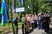 Юнармейский отряд школы №11, во главе с Савельевым И.В. провели курс молодого бойца на муниципальном празднике «Победный май» на базе Молодёжного центра "Порт".