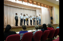 21 апреля ученики 10Б класса Резуненко Кирилл, Зотов Дмитрий, Грушин Евгений, Садрутдинов Камиль, Захарова Дария, Кротова Юлия и Цветкова Ольга совместно со своим классным руководителем Садрутдиновой Светланой Васильевной приняли участие в Муниципальном смотре художественной самодеятельности, посвященном Году культуры-2014. Номинация - бардовская песня. Школьники исполняли песни Б. Окуджавы, Ю. Визбора, А. Галича.