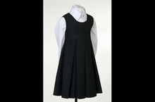 сарафан, белая блузка. Допускается жакет и классическая форма брюк.