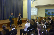 открытый урок ОБЖ 01.05.2013 Старший инспектор ПЧ №52 Тюгаев Валерий Станиславович провел 30 апреля 2013 года открытый урок ОБЖ на тему «Профилактика пожарной безопасности в жилых домах, в образовательных учреждениях и на природе» с учениками 5 –х классов (89 человек), с использованием видеоролика о работе Зеленодольского гарнизона пожарной охраны.
