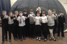 15 февраля ученики школы посмотрели видеофильм "одинокое движение Земли" в мобильном планетарии.
