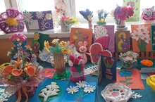В течение всей праздничной недели на первом этаже школы всех радовала и создавала настроение выставка работ (1-4 кл) "Весеннее чудо ", посвящённая Международному женскому дню 8 Марта.