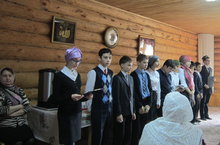 24 нче апрель көнне, безнең мәктәпнең 7 нче сыйныф укучыларын, мәчеткә, сугыш һәм тыл ветераннарын котлап чыгыш ясарга чакырдылар. Алар ветераннар алдында сугыш мизгелләрен чагылдырган әдәби монтаж күрсәттеләр, ветераннарны Бөек Җиңү бәйрәме белән котладылар.