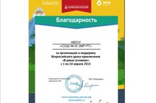 Благодарность за организацию и поддержку Всероссийского урока-приключения "В диких условиях"