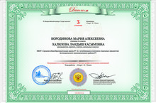 Диплом 3 степени IV Всероссийского конкурса "Спорт для всех" в номинации проекта "Спорт + Я = Успех" получила ученица 4 класса Бородинова Мария. Поздравляем Бородинову Марию и руководителя проекта - Халилову Ландыш Касымовну с победой. Молодцы!