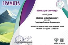 "ЭКОФОКУС" номинациясендә "Экология-һәркем эше"V Халыкара балалар – яшүсмерләр премиясендә катнашкан талантлы укучыларыбызны горурлык белән котлыйбыз.