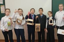 Учащиеся экологического кружка, руководитель Луиза Вейесовна Садриева, подготовили кормушки для птиц