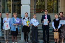 Мәктәп директоры Любина Светлана Борисовна безнең хөрмәтле кунакларыбыз белән берлектә Алдынгылар хәрәкәтендә актив катнашучыларны, шулай ук Бөтенроссия һәм республика конкурсларында үзләрен искиткеч күрсәтүчеләрне бүләкләделәр.