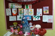 Выставка новогодних поделок и рисунков, сделанных учениками начальных классов.