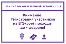 Регистрация участников на ЕГЭ -2019 проходит до 1 февраля 2019 года 23.01.2019