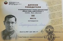 Поздравляем Гизатуллину Асию, ученицу 3 класса, с результативным выступлением на 7 муниципальном турнире декламаторов "Жизнь люби, люби Отчизну....", посвященном памяти М.Джалиля