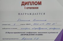Администрация школы поздравляет Данилину В. и руководителя Бармину О.А с победой в конференции.