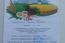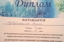 Поздравляем Мубаракшину Алину, занявшую 2 место в Республиканском конкурсе научно-исследовательских, проектных и творческих работ "Край родной навек любимый, где найдешь еще такой!"