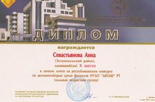 Поздравляем Севастьянову Анну занявшую X место в личном зачете на республиканском конкурсе по автомногоборью среди филиалов НУДО "ДЮСШ" РТ (младшая возрастная группа)