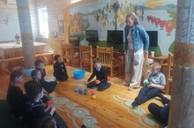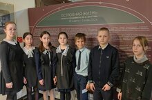 Ребята провели экскурсию для учащихся и учителей школы в выставочном зале "Старая водонапорная башня" по временной выставке "Островная жизнь".