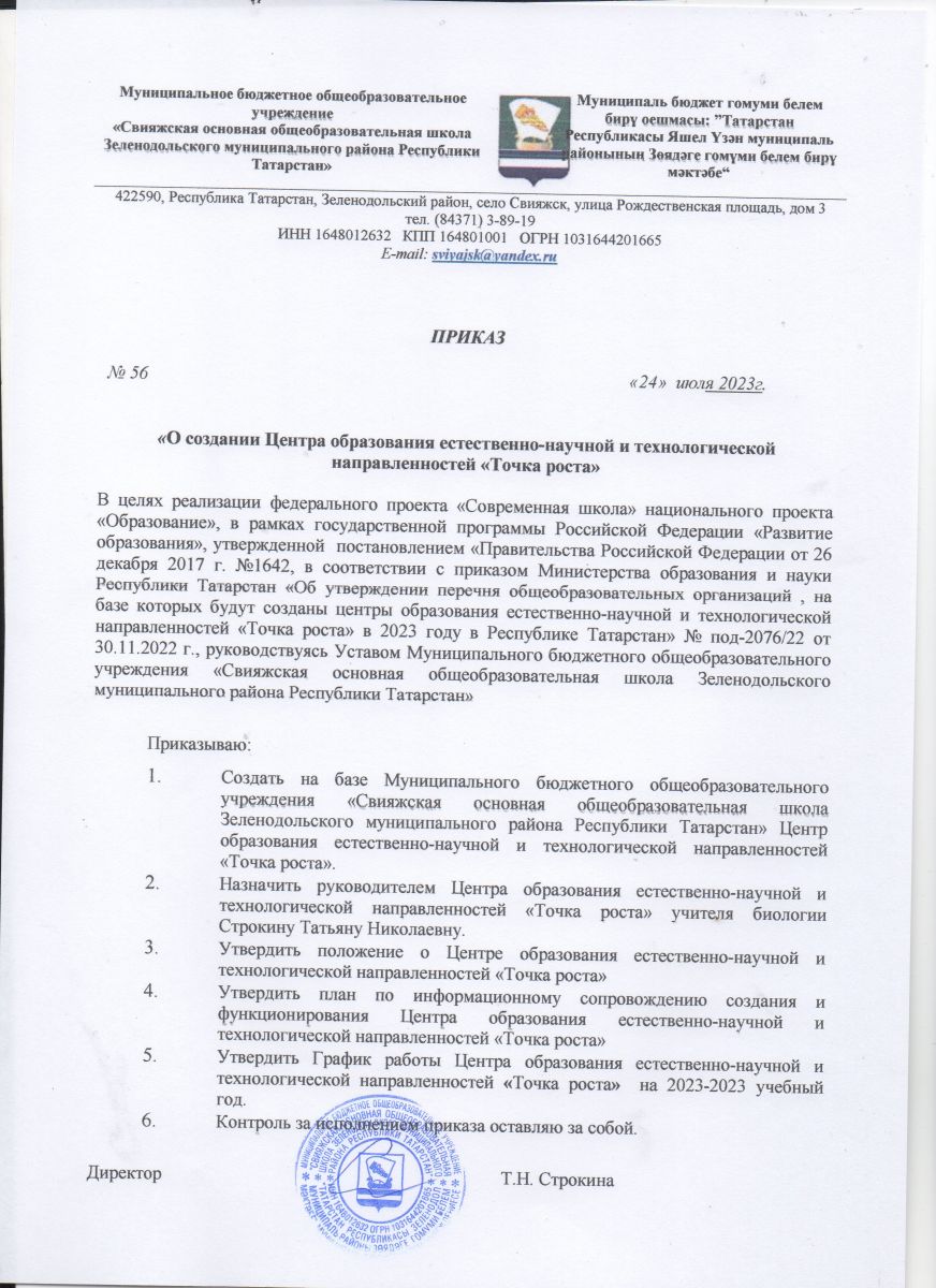 Положение о центре образования естественно - научной и технологической направленностей "Точка роста"