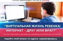 19.01.2018 с 12.00 до 13.30 состоится Республиканское родительское интернет-собрание «Виртуальная жизнь ребенка: интернет – друг или враг?». Он-лайн трансляция собрания будет вестись на сайте Казанского инновационного университета имени В.Г.Тимирясова по адресу: https://ieml.ru/.