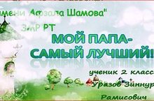 II сыйныф укучысы Уразов Зиннур - "Папа может все" муниципаль конкурсында финалга узды. Алда тагын ярышасы бар әле...