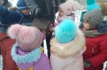 "Табигатькә дус бул!"- шундый исем астында безнең балалар бакчасында экологик проект үткәрелде. Максаты: мәктәпкәчә яшьтәге балаларда табигать турында аңлы-дөрес экологик күзаллаулар системасын формалаштыру. Проектның бер этабы - безнең кечкенә дусларыбыз - кышлаучы кошлар өчен җимлекләр ясау.
