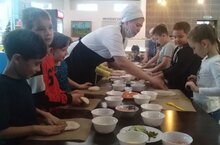 Учащиеся 1б класса совместно с родительским комитетом посетили мастер - класс, где приготовили вкуснейшую пиццу своими руками 04.12.2021