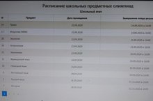 График школьного этапа Всероссийской олимпиады школьников 21.09.2020