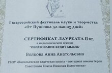 Учитель физики Волкова Анна Анатольевна приняла участие в очном этапе I Всероссийского фестиваля "От Пушкина до наших дней" и стала Лауреатом II степени 21.03.2025