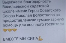 Васильевская КШИ приняла участие в оказании гуманитарной помощи для военного госпиталя. В сборе активное участие приняли дети, родители, учителя, администрация школы, технический персонал – каждый был намерен внести свой вклад в победу. Российским солдатам искренне и от всего сердца желаем не падать духом, верить только в лучшее и смотреть только вперед, не опуская головы. 14.11.2023