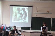 В рамках весенней недели добра заведующая школьной библиотекой Л.Д.Фасхутдинова проводит ознокамительную беседу с учащимися "Города-Герои", посвященная