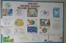 В рамках месячника безопасности в школе проходит выставка рисунков "Мы за мир, войны не нужно!"