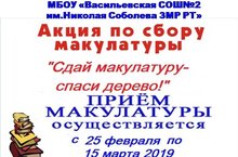 АКЦИЯ "Сдай макулатуру-спаси дерево!" 15.03.2019