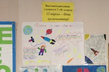 В фойе школы прошла выставка рисунков 2 в класса (кл.рук Аникина Г.Ш), посвященная Дню космонавтики