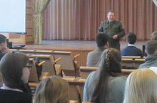 В актовом зале нашей школы среди учащихся 11 классов прошла лекция-беседа по проф.ориентации (поступлении в высшее военное училище РФ). Лекцию читал ст.помощник начальника отдела Военного комиссариата г.Зеленодольска и ЗМР РТ Чилибанов В.А.. Тема беседы-лекции была