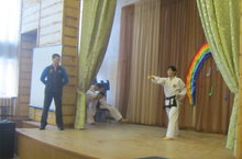 В АКТОВОМ ЗАЛЕ ДЛЯ УЧАЩИХСЯ 3-5 КЛАССОВ СКОТНИКОВ ВЯЧЕСЛАВ ВЯЧЕСЛАВЛВИЧ ПРОВЕЛ МАСТЕР КЛАСС ПО ТХЭКВОНДО