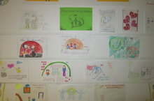В ФОЙЕ ШКОЛЫ ПРОШЛА ВЫСТАВКА РИСУНКОВ "МИР ОДИН НА ВСЕХ!", В КОТОРОЙ УЧАЩИЕСЯ 5-7 КЛАСС ПРИНЯЛИ АКТИВНОЕ УЧАСТИЕ!РЕБЯТА РИСОВАЛИ РИСУНКИ НА ТЕМЫ : "ДЕТИ ТАК НЕ ДЕЛЯТСЯ!" "ДЕТИ ДЕТЯМ!"