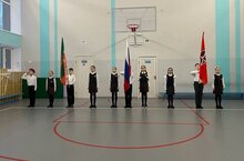 Учебная неделя началась с выноса флагов Российской Федерации и Республики Татарстан , а также исполнения гимнов в голос.