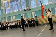 Новая учебная неделя в нашей школе началась традиционно: линейка, вынос флагов а Российской Федерации и Республики Татарстан, исполнение гимна.