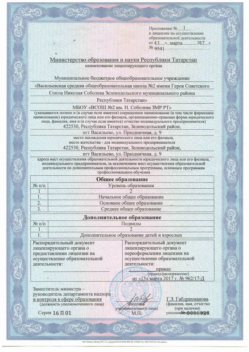 Муниципальное бюджетное общеобразовательное учреждение "Лицей №2 имени Героя Советского Союза Николая Соболева пгт.Васильево Зеленодольского муниципального района РТ"/"Татарстан Республикасы Зеленодольск муниципаль районы Васильево бистәсенең Советлар Союзы Герое Николай Соболев исемендәге 2 нче лицей" муниципаль бюджет гомуми белем бирү учреждениесе