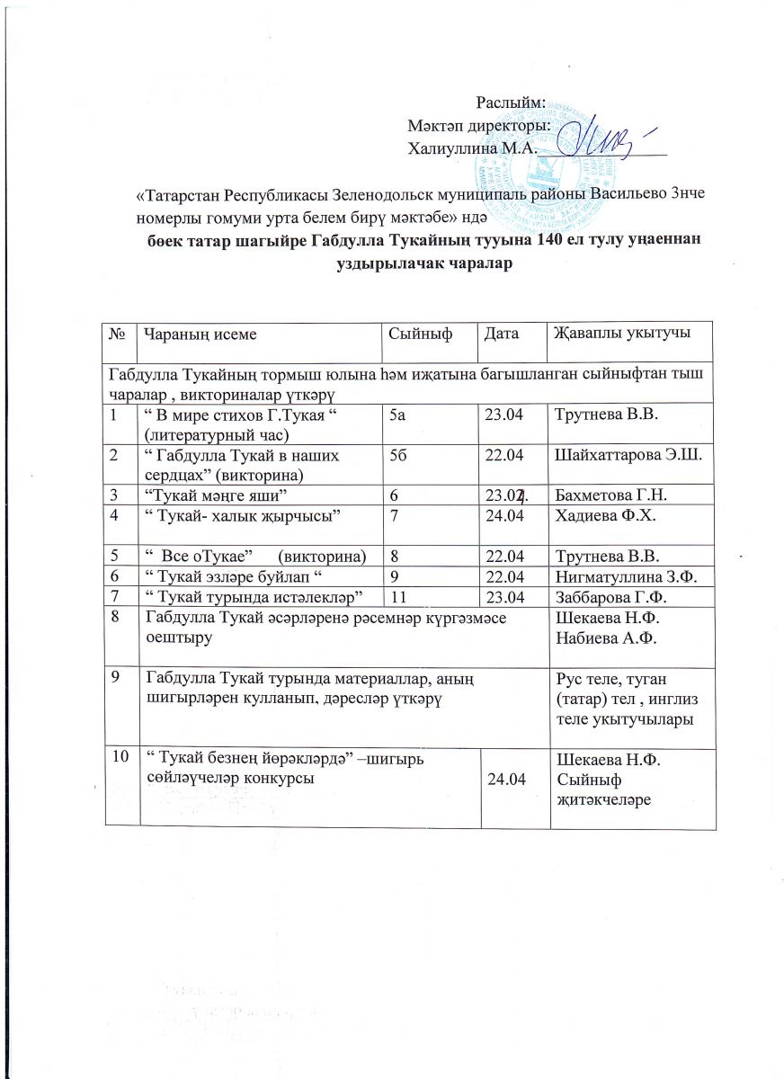 План мероприятий, посвященных Дню рождения великого татарского поэта Габдуллы Тукая